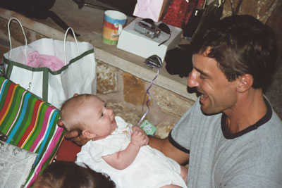 on front in a Baby Bjorn, bigger in a frame backpack.
