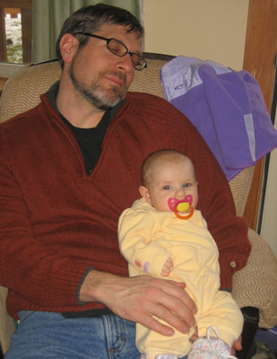 and I sleep. I wake around 7:30, pump (so we have milk